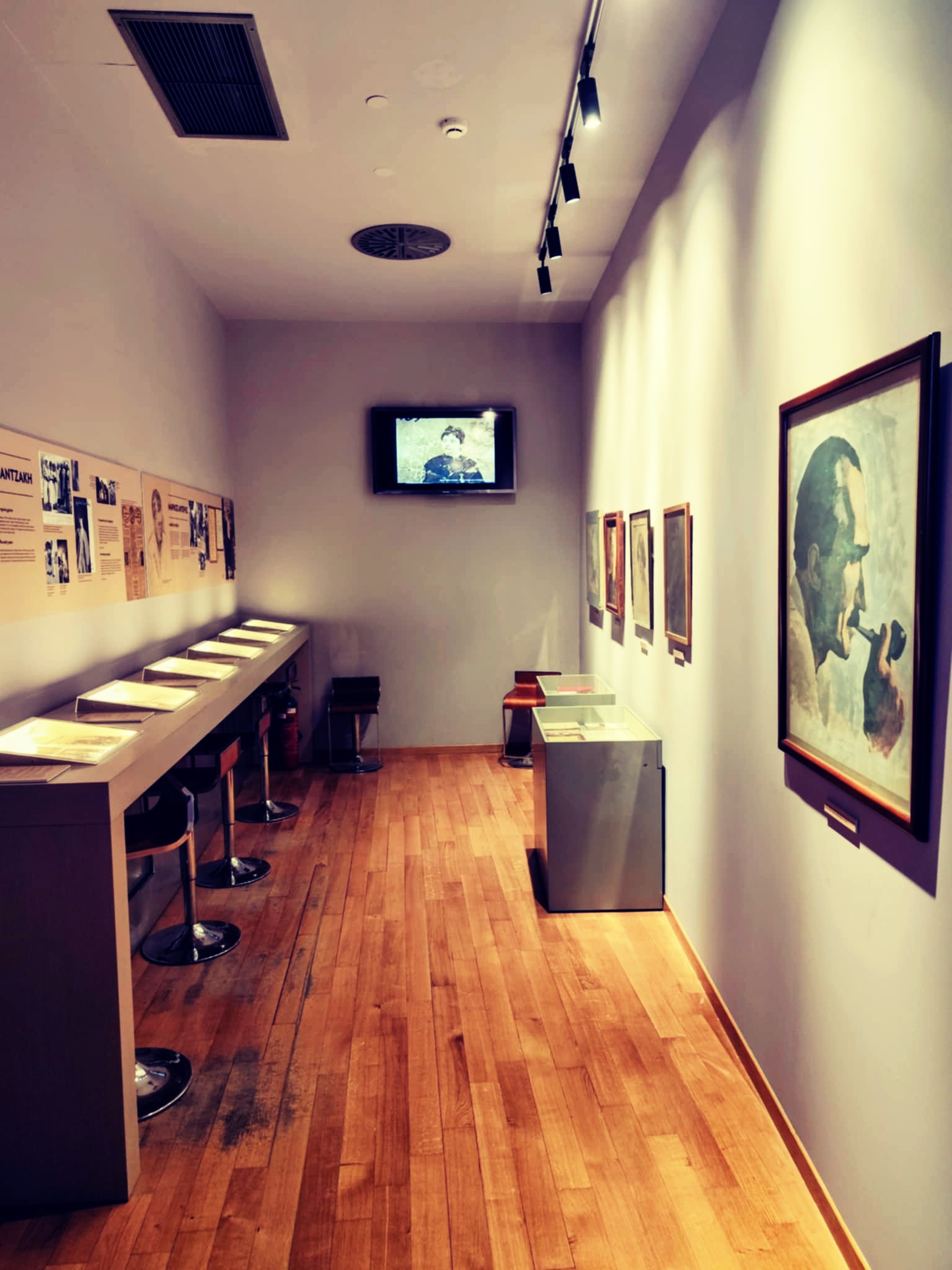 - Στον προθάλαμο του δευτέρου ορόφου, όπου εκτίθενται ζωγραφικά έργα και έπιπλα από το σπίτι της στην Αθήνα.