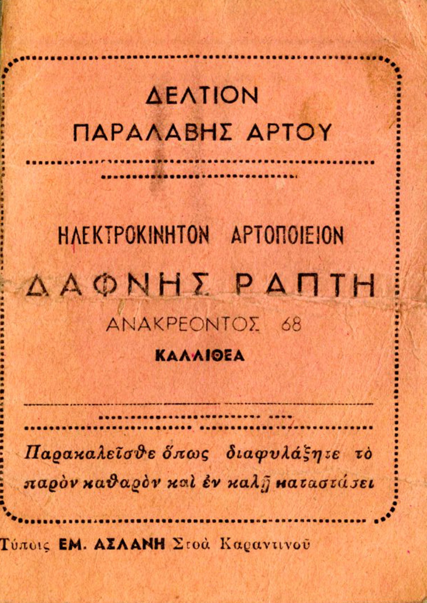Η πρόσθια όψη των δελτίων επισιτισμού της Έλλης Αλεξίου κατά τη διάρκεια της γερμανικής Κατοχής