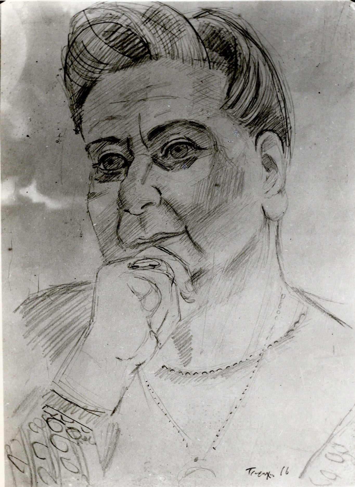 Σκίτσο της Έλλης Αλέξίου από τον Γιάννη Τσαρούχη το 1966